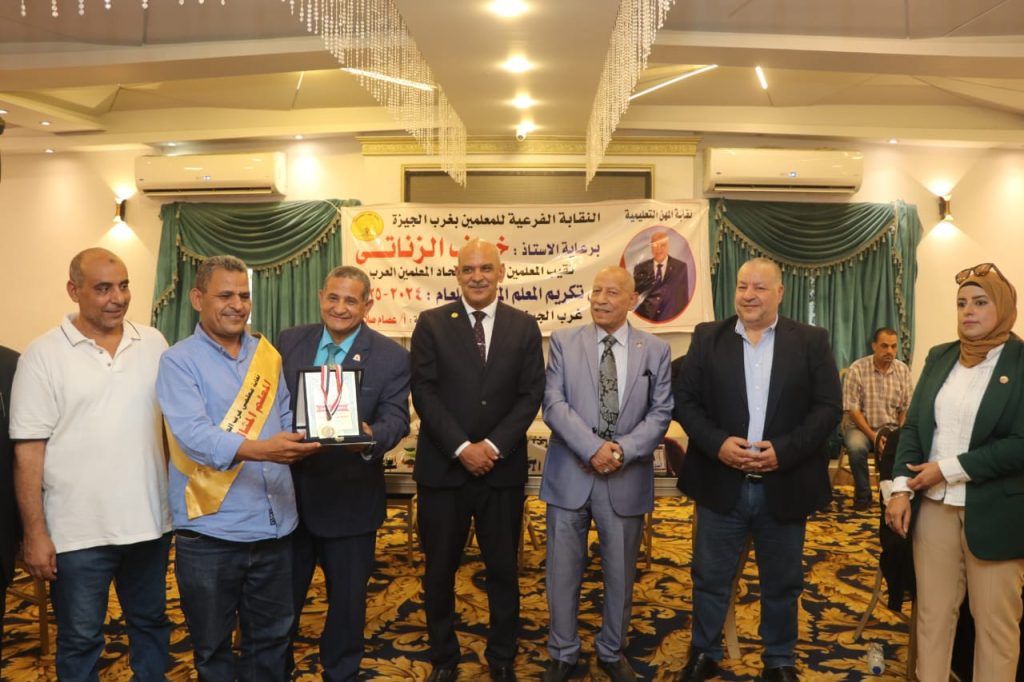 نظمت النقابة الفرعية للمعلمين بغرب الجيزة، برئاسة عصام صلاح، حفلًا لتكريم 60 معلمًا من المثاليين على مستوى اللجان النقابية بالجيزة، وذلك بنادي المعلمين بالجيزة، تحت رعاية خلف الزناتي، نقيب المعلمين ورئيس اتحاد المعلمين العرب، وبحضور محمد عبد الله وكيل النقابة العامة للمهن التعليمية، وياسر عرفات الأمين العام للنقابة، وحامد الشريف أمين صندوق النقابة العامة، إلى جانب عدد من القيادات النقابية والتعليمية بمحافظة الجيزة.