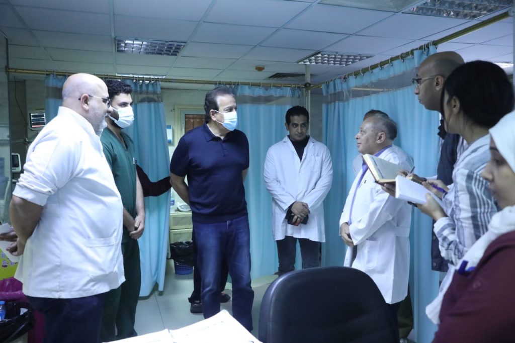وقال الدكتور حسام عبدالغفار المتحدث الرسمي لوزارة الصحة والسكان، إن الوزير، اطلع على كشوفات سجل استقبال الطواريء عن اليوم، واطمئن على حجم الاشغال ومعدل الترددات للمستشفى، ثم اتجه لتفقد وحدة الرعاية المركزة بقوة 10 أسرة، ويشغلها حاليا 9 حالات، حرص على تفقدهم والاطمئنان على حالتهم الصحية.
