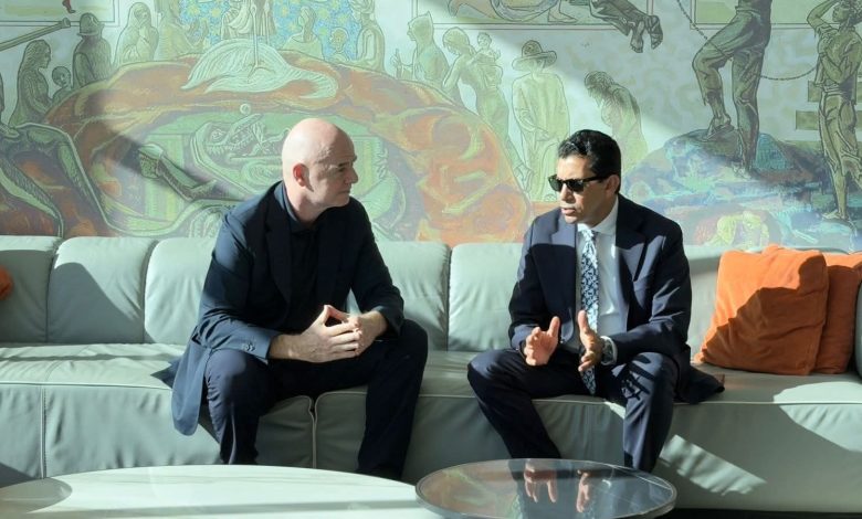 وخلال اللقاء، رحّب وزير الشباب والرياضة برئيس الفيفا في مصر، مؤكدًا على عمق التعاون القائم بين وزارة الشباب والرياضة والاتحاد الدولي لكرة القدم، ودور الفيفا في دعم خطط تطوير كرة القدم المصرية والنهوض بالمنظومة الكروية على المستويين الفني والإداري.