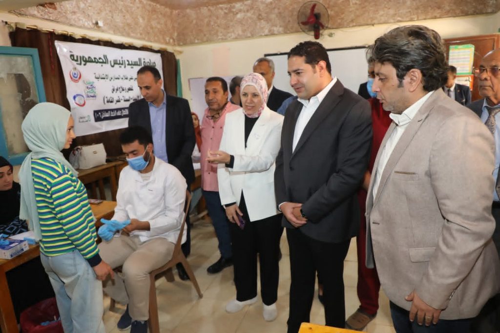 تابع نائب المحافظ جانبا من أعمال الكشف على الطلاب بمدرسة خاتم المرسلين ضمن المبادرة الرئاسية للكشف المبكر لأمراض الانيميا والسمنة وقصر القامة ويتم خلالها فحص نسبة الهيموجلبين فى الدم وقياس الطول ووزن الطفل ومؤشر كتلة الجسم للتلاميذ المستهدفين من الحملة.
