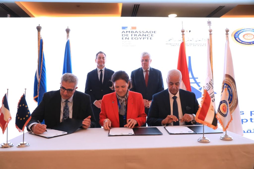 كما تم توقيع مذكرة تفاهم لتنفيذ برنامج المنح الدراسية لدرجة الدكتوراه، الممول بالشراكة بين السفارة الفرنسية ووزارة التعليم العالي والبحث العلمي المصرية، والذي يهدف إلى تمويل 100 منحة دكتوراه خلال خمس سنوات في مختلف المجالات العلمية والبحثية؛ تعزيزًا للتعاون الأكاديمي وتبادل الخبرات بين البلدين.