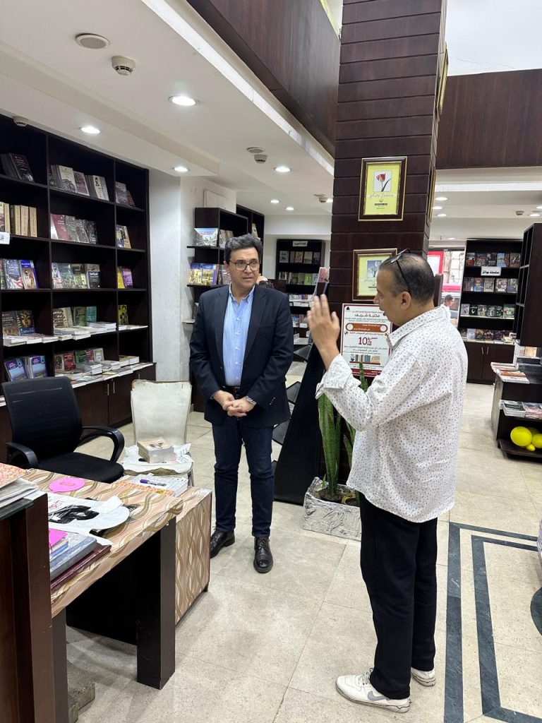 وخلال الجولة، اطلع وزير الثقافة على أقسام المكتبة وما تضمه من إصدارات متنوعة في مختلف المجالات، كما استمع إلى شرح من القائمين على المكتبة حول أحدث الإصدارات والكتب الأكثر مبيعًا، والفئات الأكثر إقبالًا على الشراء من طلاب وباحثين وموظفين ومهتمين بالثقافة والفكر.