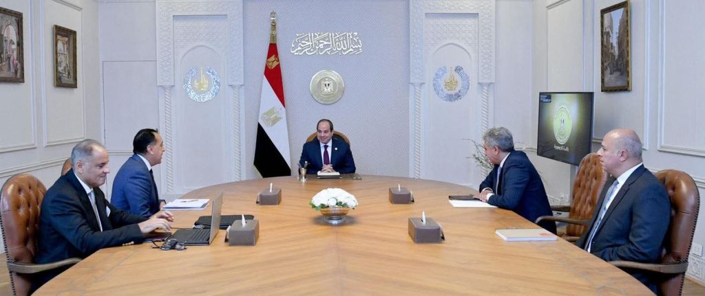 اجتمع الرئيس عبد الفتاح السيسي، اليوم، مع الدكتور مصطفى مدبولي، رئيس مجلس الوزراء، وشريف فتحي، وزير السياحة والآثار، ومحمد السعدي، عضو مجلس ادارة الشركة المتحدة للخدمات الإعلامية والمشرف العام على حفل افتتاح المتحف المصري الكبير.