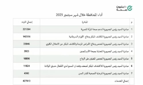 كما احتلت المحافظة المركز الأول خلال شهر سبتمبر الماضى في مبادرة الكشف المبكر وعلاج الأورام السرطانية و الزيارات الدورية لمبادرة دعم صحة المرأة والكشف المبكر عن سرطان الثدي