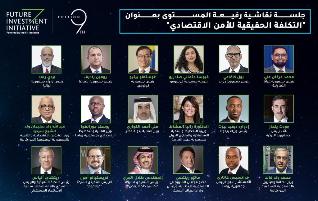 شاركت الدكتورة رانيا المشاط، وزيرة التخطيط والتنمية الاقتصادية والتعاون الدولي، في جلسة نقاشية رفيعة المستوى بعنوان «التكلفة الحقيقية للأمن الاقتصادي» وذلك خلال مشاركتها في فعاليات النسخة التاسعة من مؤتمر «مبادرة مستقبل الاستثمار»، الذي يُعقد بمركز الملك عبد العزيز الدولي للمؤتمرات بمدينة الرياض، تحت شعار «مفتاح الازدهار» ويستمر حتى 30 أكتوبر الجاري.