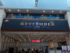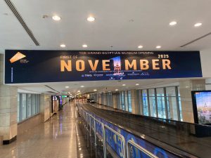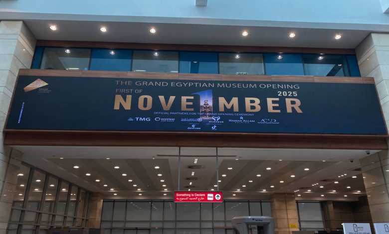 بانرات وشاشات ترويجية تزين مطار القاهرة الدولي احتفالًا بافتتاح المتحف المصري الكبير