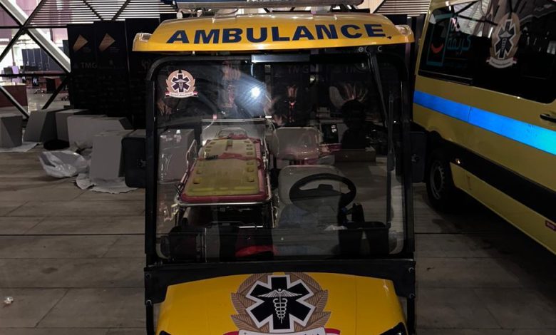 * نشر 8 سيارات إسعاف حديثة ومزودة بمعدات الإنعاش والإسعاف الأولي داخل المتحف، بالإضافة إلى 15 سيارة متمركزة في نقاط استراتيجية حول المتحف، لضمان الوصول السريع إلى أي موقع داخل أو خارج المبنى