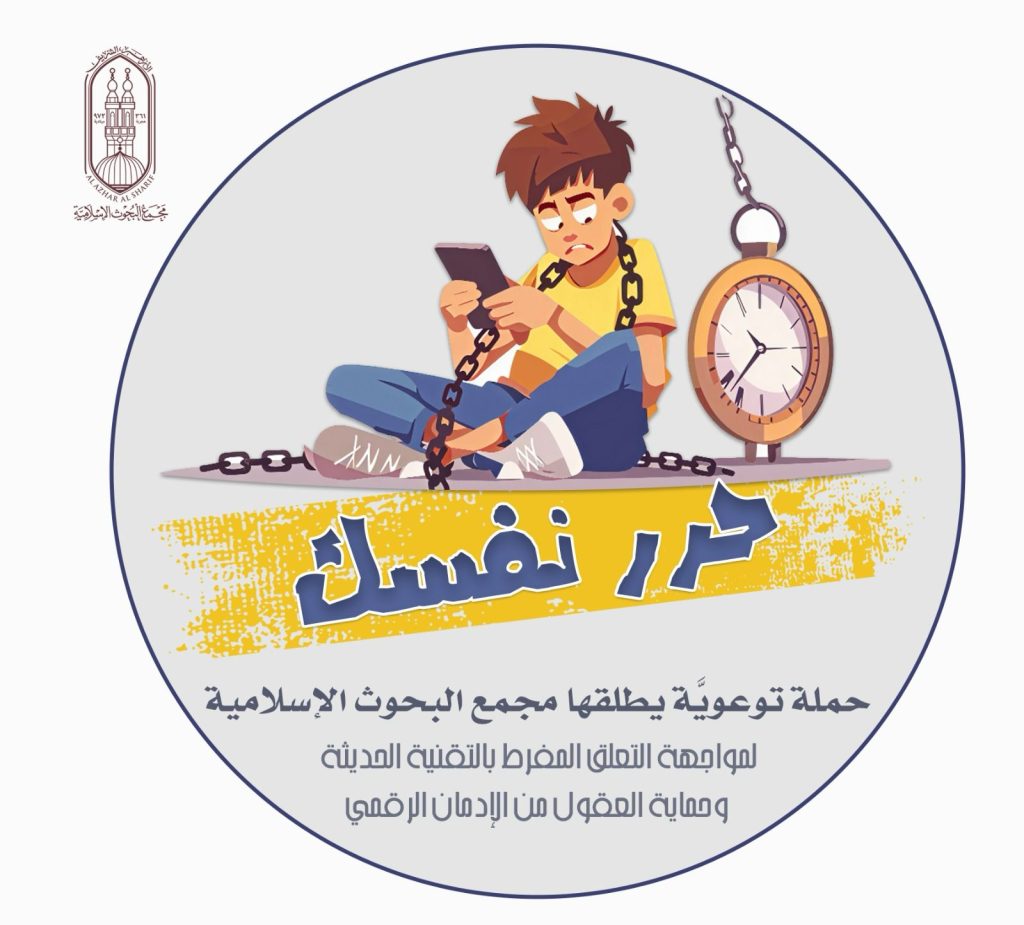 أطلِق مجمَع البحوث الإسلاميَّة بالأزهر الشريف، اليوم، حملةً توعويَّةً جديدةً تحت عنوان: (حرِّر نفْسَك)؛ استمرارًا لجهوده في توعية المجتمع -خاصَّة فئة الشباب- بخطورة التعلُّق المفرِط بالتقنية الحديثة ومواقع التواصل الاجتماعي، وبيان آثارها السلبية على استقرار النفْس والأسرة والمجتمع، والدعوة إلى تحقيق التوازن بين استخدام الوسائل الرَّقْميَّة ومتطلَّبات الحياة الواقعيَّة.