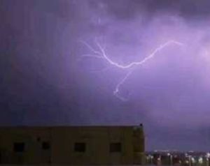 وإصابة ه .س. ش، 27 عاما، ربة منزل، ومقيمة زاوية غزال، بحروق بالساعد الأيسر والفخذ الأيسر ادعاء صعق بسبب البرق.