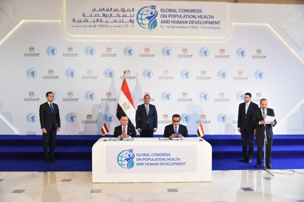 وقعت وزارة الصحة والسكان، مذكرة تفاهم مع دولة لاتفيا، بشأن التعاون في مختلف مجالات الرعاية الصحية، وذلك بحضور الدكتور مصطفى مدبولي رئيس مجلس الوزراء، ضمن فعاليات اليوم الأول من النسخة الثالثة للمؤتمر العالمي للسكان والصحة والتنمية البشرية، والذي يُقام خلال الفترة من 12 حتى 15 نوفمبر 2025.