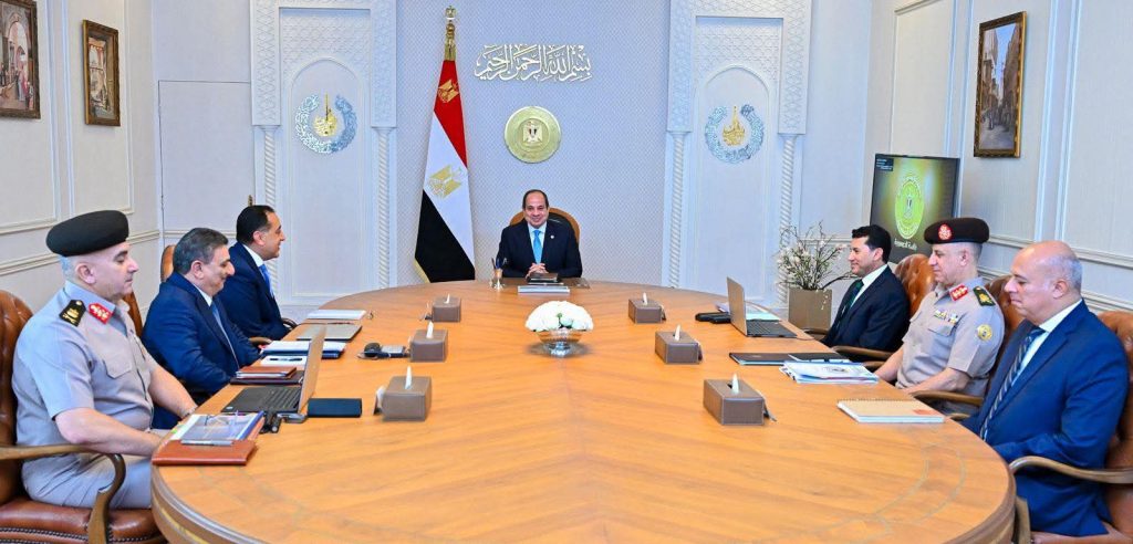 اجتمع الرئيس عبد الفتاح السيسي، اليوم، مع الدكتور مصطفى مدبولي رئيس مجلس الوزراء، والدكتور أشرف صبحي وزير الشباب والرياضة، والفريق أحمد الشاذلي مُستشار رئيس الجمهورية للشئون المالية، واللواء خالد أحمد عبد الله رئيس هيئة الشئون المالية للقوات المسلحة، واللواء وليد محمد عارف رئيس الهيئة الهندسية للقوات المسلحة.