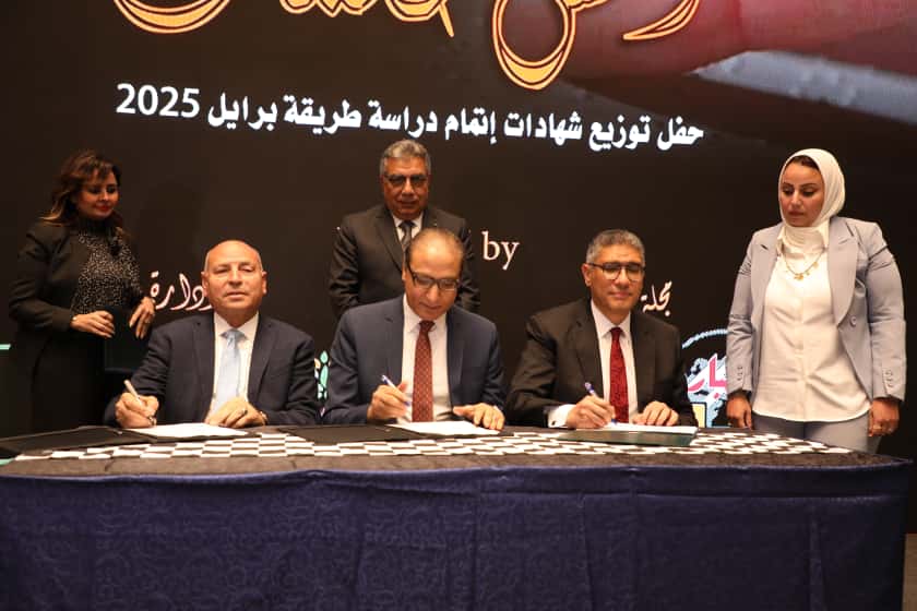 جاء توقيع البروتوكول خلال فاعليات الحفل الذى أقامته مؤسسة أخبار اليوم تحت عنوان ” عشاء في الظلام ” لتوزيع شهادات اتمام دراسة طريقة برايل بحضور عبدالصادق الشوربجي رئيس الهيئة الوطنية للصحافة، وم. عادل النجار محافظ الجيزة، واللواء طارق مرزوق محافظ الدقهلية.