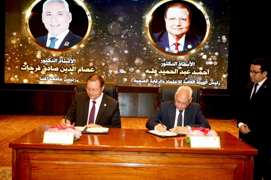 وقام بتوقيع البروتوكول كل من الدكتور أحمد طه، رئيس الهيئة، والدكتور عصام الدين صادق فرحات، رئيس جامعة المنيا، ويهدف إلى تصميم وتنفيذ سلسلة من البرامج التدريبية المتخصصة في مجال جودة الرعاية الصحية والاعتماد، لتطبيقها داخل المستشفيات والمنشآت الصحية التابعة لجامعة المنيا.