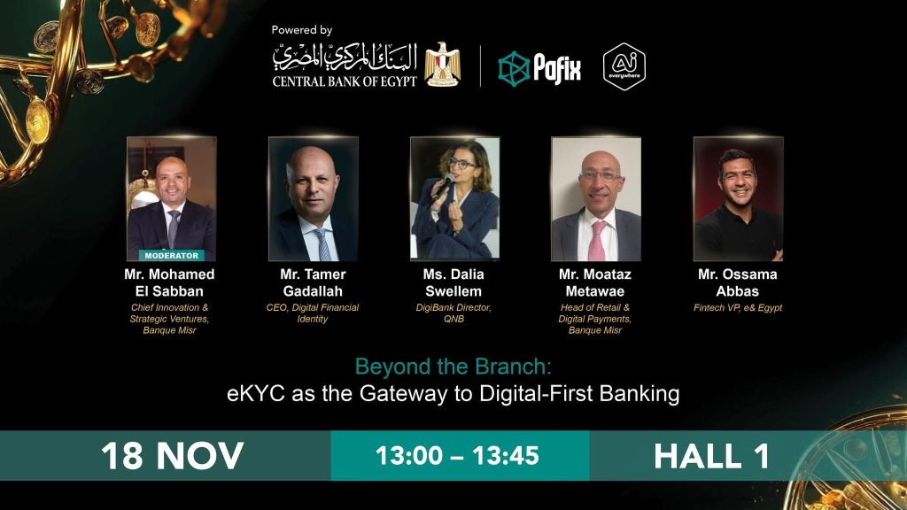 شهدت جلسة “ما بعد الفروع: الهوية الرقمية EKYC كبوابة أساسية للتحول نحو البنك الرقمي أولًا” ضمن فعاليات معرض PAFIX على هامش Cairo ICT 2025، مناقشات موسعة حول الدور المحوري للهوية الرقمية في تغيير شكل الخدمات المصرفية في مصر، من خلال إتاحة فتح الحسابات وتنفيذ الخدمات المالية إلكترونيًا دون الحاجة لزيارة الفروع.