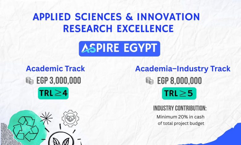 في هذا الإطار، تعلن هيئة تمويل العلوم والتكنولوجيا والابتكار (STDF) عن فتح باب التقدم للنداء الرابع من برنامج “التميّز في العلوم التطبيقية والابتكار” (ASPIRE Egypt)، الذي يهدف إلى دعم المشروعات البحثية التطبيقية التي تُسهم في تحويل نتائج البحث العلمي إلى حلول وابتكارات ذات أثر ملموس في المجتمع والصناعة.