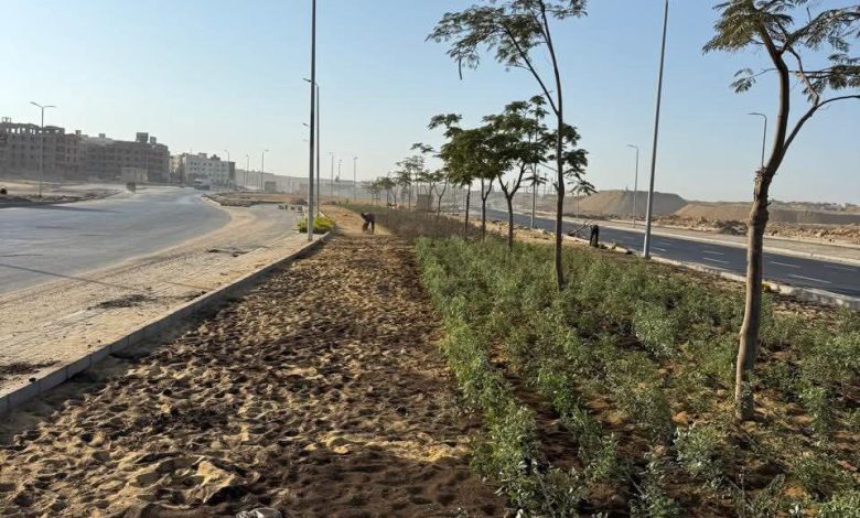 تنفيذ أعمال الزراعة بشارع التسعين الشمالي ومحور 24 بالقاهرة الجديدة
