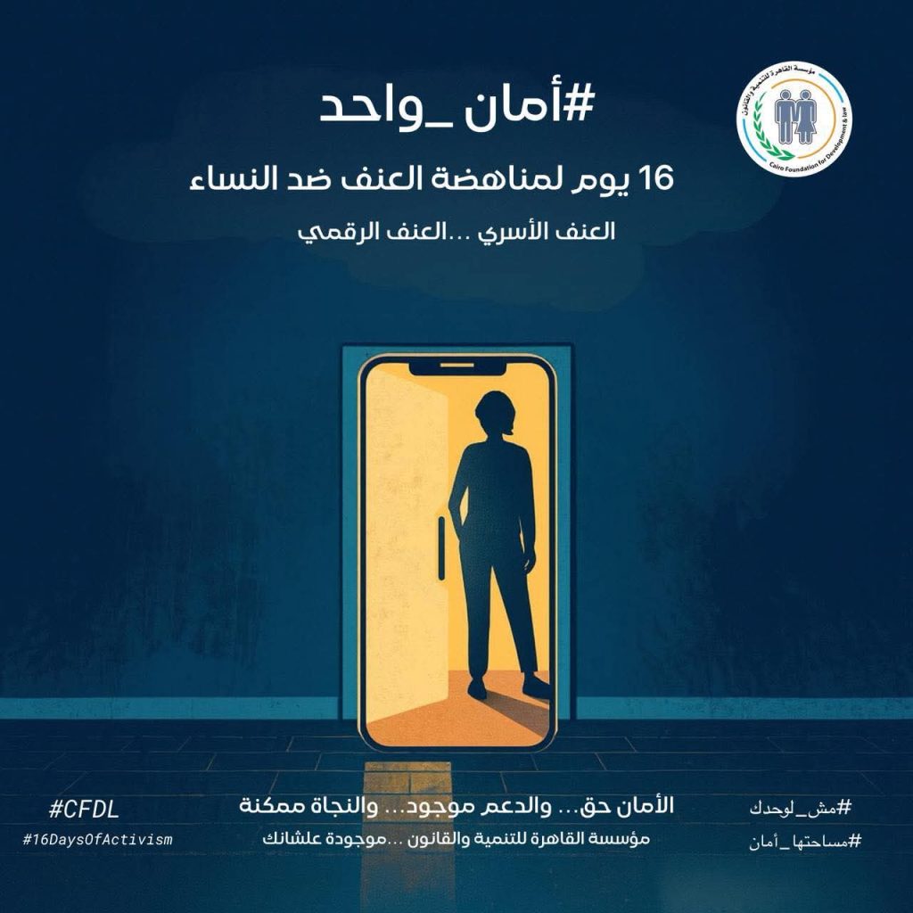 أطلقت مؤسسة القاهرة للتنمية والقانون بيانها الافتتاحي لحملة “أمان واحد” ضمن فعاليات حملة الـ16 يومًا لمناهضة العنف ضد النساء، والتي تأتي هذا العام تحت شعار: