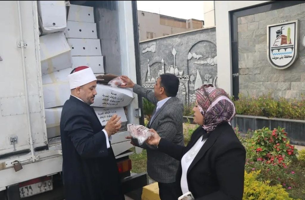 بتكليف من الدكتور محمد هاني غنيم محافظ بني سويف أشرف السكرتير العام المساعد اللواء أحمد جمال الدين على استلام دفعة جديدة من اللحوم ضمن مشروع لحوم صكوك الأوقاف.