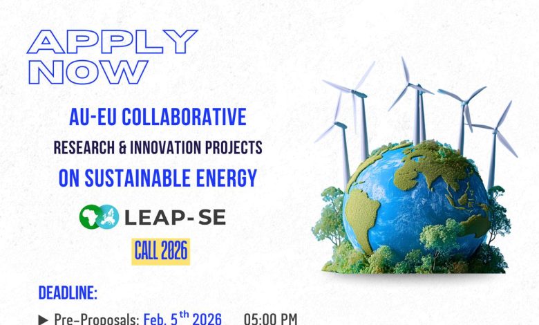 في هذا الإطار، تعلن هيئة تمويل العلوم والتكنولوجيا والابتكار (STDF) بالتعاون مع الاتحاد الأوروبي (EU) عن إطلاق النداء الثاني لبرنامج الشراكة طويلة الأجل بين الاتحاد الأوروبي والاتحاد الأفريقي للبحث والابتكار في الطاقة المستدامة (LEAP-SE 2026)، بتمويل يصل إلى ٣٠٠ ألف يورو للمشروع الواحد من الجانب المصري، وذلك بهدف دعم المشروعات المشتركة التي تُسهم في تعزيز الابتكار في مجال الطاقة النظيفة وربط الشراكات بين المؤسسات الأكاديمية والبحثية في أوروبا وأفريقيا.