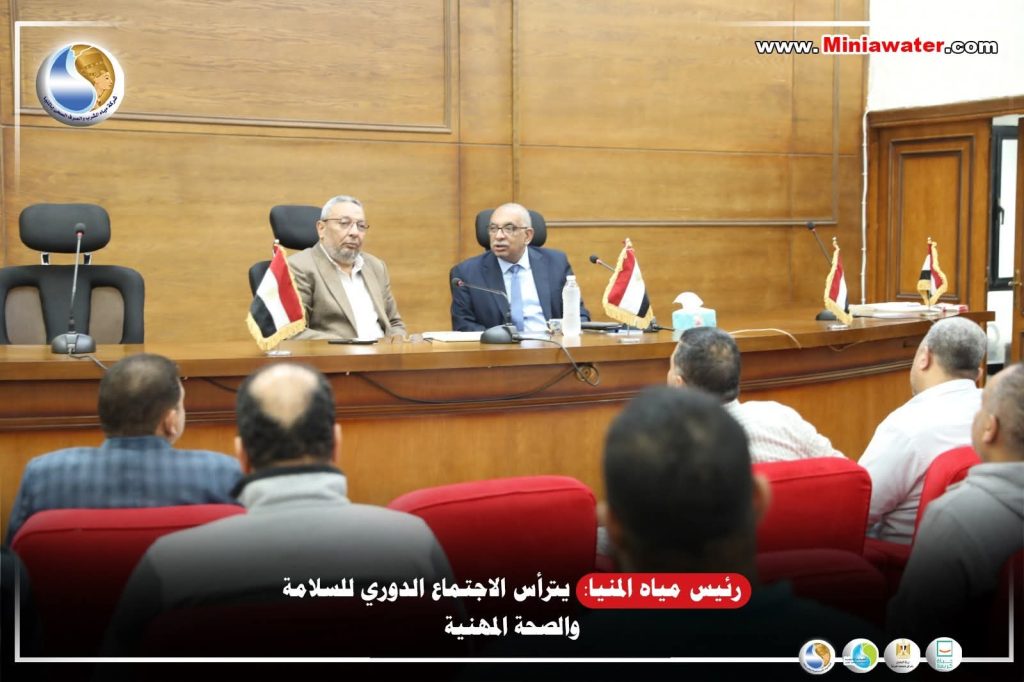 ترأس المهندس حسن يحيى رئيس مجلس الإدارة والعضو المنتدب لشركة مياه الشرب والصرف الصحي بالمنيا الاجتماع الدوري للسلامة والصحة المهنية وذلك بحضور المحاسب محمود أسامة نائب رئيس الشركة.