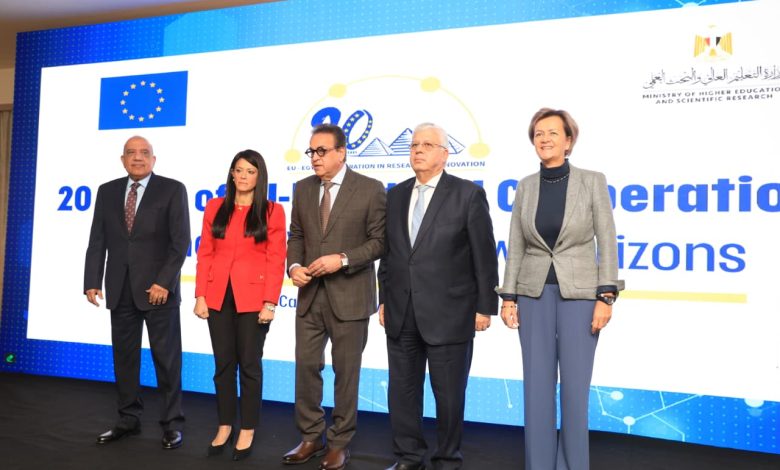 أطلقت وزارة التعليم العالي والبحث العلمي بالتعاون مع بعثة الاتحاد الأوروبي في مصر، فعاليات “أسبوع البحث والابتكار بين مصر والاتحاد الأوروبي، بحضور الدكتور خالد عبدالغفار نائب رئيس الوزراء للتنمية البشرية وزير الصحة والسكان، والدكتور أيمن عاشور وزير التعليم العالي والبحث العلمي، والدكتورة رانيا المشاط وزيرة التخطيط والتنمية الاقتصادية والتعاون الدولي، والدكتور محمود عصمت وزير الكهرباء والطاقة المتجددة، والسفيرة أنجلينا إيخهورست رئيسة وفد الاتحاد الأوروبي لدى مصر، بجانب مشاركة واسعة لنخبة من كبار المسؤولين والخبراء والأكاديميين من الجانبين المصري والأوروبي ورؤساء الجامعات وقيادات الوزارة.