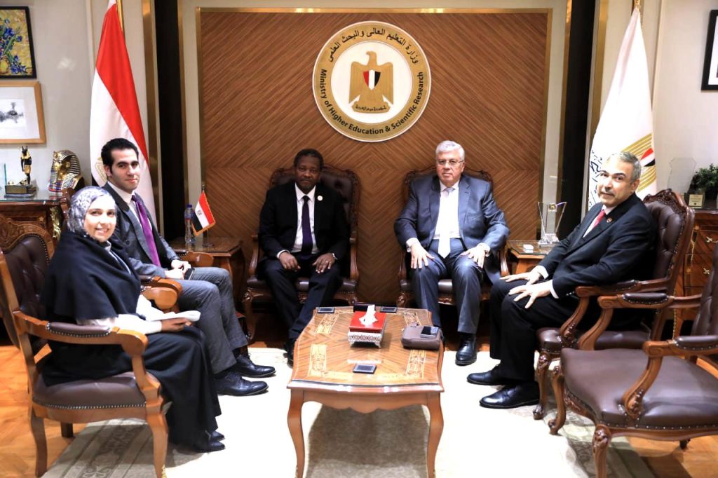 استقبل د.أيمن عاشور وزير التعليم العالي والبحث العلمي غاسبار بانياكيـمبونا مفوض التعليم والعلوم والابتكار بالاتحاد الإفريقي، بحضور د.حسام عثمان نائب الوزير لشؤون الابتكار والذكاء الاصطناعي والبحث العلمي، ود.سلمى يسري مساعد الوزير للتعاون الدولي، وأ.محمد فايز من إدارة المنظمات والتجمعات الإفريقية بوزارة الخارجية، وذلك بمقر الوزارة بالعاصمة الإدارية الجديدة.