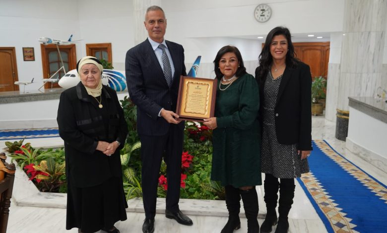رئيس مصر للطيران يكرم داليا المراغي ويهديها درع الشركة تقديراً لمسيرتها المهنية
