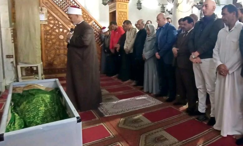 وبحضور السكرتير العام اللواء حازم عزت، والأستاذ محمد بكري رئيس مركز ومدينة بني سويف حيث أمّ المصلين في صلاتي الظهر والجنازة وكيل وزارة الأوقاف الشيخ عاصم القبيصي.