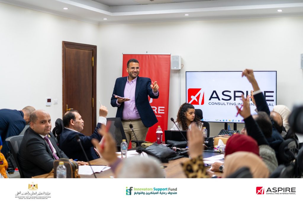 نظم صندوق رعاية المبتكرين والنوابغ ورشة عمل تفاعلية للباحثين المشاركين في برنامج تأهيل الباحثين لريادة الأعمال (R2E) بالجامعات والمعاهد البحثية المصرية، وقد جاءت الورشة بالتعاون مع شركة ASPIRE المتخصصة في الابتكار وريادة الأعمال، وبحضور د.تامر حمودة المدير التنفيذي للصندوق، ود.وئام محمود المدير التنفيذي لوحدة الابتكار المؤسسي بالوزارة ومنسق ملف الابتكار وريادة الأعمال بين المؤسسات التابعة لوزارة التعليم العالي والبحث العلمي والجامعات المصرية، ود.شموس إبراهيم مساعد المدير التنفيذي للصندوق، ود.مصطفى أمين مدير برامج بالصندوق.