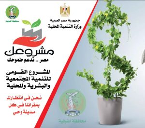 أكد محافظ المنوفية علي حرصه التام على تقديم كافة أوجه الدعم للتوسع في إقامة العديد من المشروعات من خلال برنامج مشروعك لما يمثله من دور محوري في تنمية ودفع عجلة الإنتاج بشتى المجالات وخلق فرص عمل جديدة للشباب والمرأة المعيلة بقري وأحياء المحافظة .