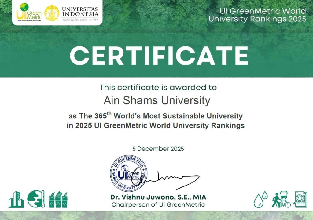 ويأتي هذا التقدم برعاية ودعم مباشر من الأستاذ الدكتور محمد ضياء زين العابدين، رئيس جامعة عين شمس، وفي إطار الرؤية الاستراتيجية الطموحة التي تتبناها الجامعة لتعزيز الاستدامة البيئية والحوكمة الرشيدة، وبمتابعة الأستاذة الدكتورة غادة فاروق، نائب رئيس الجامعة لشئون خدمة المجتمع وتنمية البيئة.