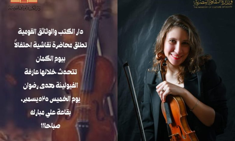 تنظم دار الكتب والوثائق القومية، برئاسة الدكتور أسامة طلعت، مناقشة ومحاضرة ثقافية موسيقية بعنوان «أنغام في يوم الكمان»، بمناسبة اليوم العالمي للكمان، وتنظمها قاعة الموسيقى بدار الكتب تحت إدارة رشا أحمد.