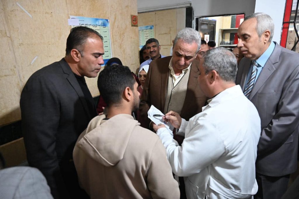 واستمعالمحافظ بعناية إلى ملاحظاتهم المتعلقة بمواعيد الكشف وصرف الأدوية، مؤكدًا لهم أن مطالبهم محل اهتمام كامل، وأن تحسين مستوى الخدمة حق أصيل لكل مواطن، قائلاً: «مطالبكم فوق راسي.. ومن حقكم خدمة طبية محترمة تليق بكرامتكم».