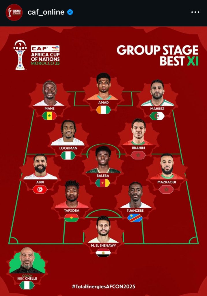 تواجد محمد الشناوي حارس مرمي منتخب مصر ضمن التشكيلة المثالية لدور المجموعات لبطولة كأس الأمم الأفريقية ٢٠٢٥-٢٠٢٦ المقامة بالمغرب .