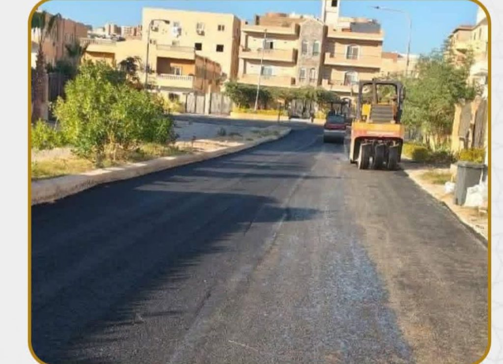 ذلك لتطوير ورفع كفاءة الطرق والمحاور والميادين بمختلف قطاعات المدينة كما جارٍ تنفيذ أعمال الطبقة الأسفلتية بالحي الخامس ضمن خطة تحسين ورفع كفاءة الطرق الداخلية بالأحياء السكنية،