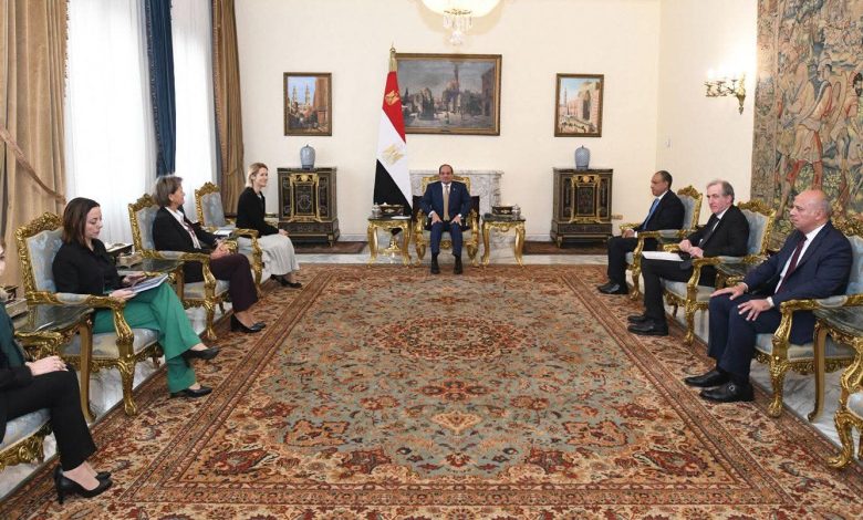 استقبل الرئيس عبد الفتاح السيسي، اليوم، كايا كالاس، الممثلة العليا للشؤون الخارجية والسياسة الأمنية للاتحاد الأوروبي، وذلك بحضور الدكتور بدر عبد العاطي وزير الخارجية والهجرة وشؤون المصريين في الخارج، والسفيرة أنجلينا إيخهورست رئيسة بعثة الاتحاد الأوروبي بالقاهرة، وكريستين أودوير عضو مكتب الممثل الأعلى للاتحاد الأوروبي للشؤون الخارجية والسياسة الأمنية، و روزاماريا جيلي نائب المدير العام للشرق الأوسط وشمال أفريقيا، وكريستوف بيجو، مبعوث الاتحاد الأوروبي لعملية السلام في الشرق الأوسط.