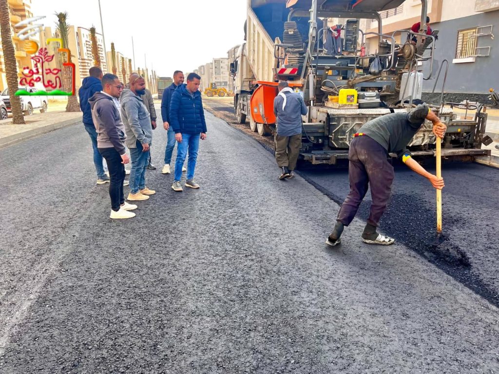 ذلك لتفقد أعمال الطرق الجارية طبقة أساس طبقة رابطة اسفلتية تنسيق الموقع العام لعمارات المبادرة الرئاسية سكن لكل المصريين بمحوريها محدودي ومتوسطي الدخل.