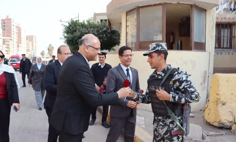محافظ القليوبية ورئيس جامعة بنها يقدمان الورود على رجال الشرطة بالأكمنة والميادين احتفالاً بعيدهم الـ 74
