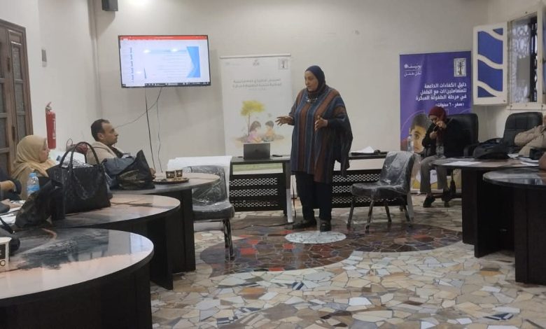 وهدفت الورشة التدريبية إلى بناء قدرات المتعاملين مع الأطفال في مرحلة الطفولة المبكرة، والتدريب على دليل الكفاءات للمتعاملين مع الأطفال من الولادة وحتى سن 6 سنوات، بمشاركة ممثلي الجهات الشريكة من وزارة التضامن الاجتماعي، ووزارة التربية والتعليم، ووزارة الصحة، ووزارة الثقافة، وممثلي وحدات حماية الطفل العامة.