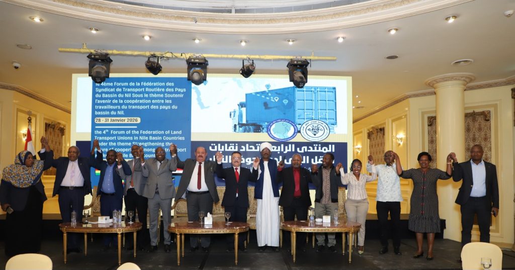 اختتم المنتدى الرابع لنقابات النقل البري لدول حوض النيل أعماله بالعاصمة المصرية القاهرة، والتي استمرت على مدار يومي 29 و30 يناير 2026، بحضور ومشاركة واسعة من ممثلي النقابات العمالية بقطاع النقل البري في دول حوض النيل.