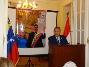 وفي هذا الاطار، جاء لقاء السفير ويلمر أومار بارينتوس- سفير جمهورية فنزويلا البوليفارية السفير بالقاهرة، مع الصحفيين والإعلاميين، وقيادات حزبية، ونشطاء حقوقيين؛ حيث فند ادعاءات وأكاذيب إدارة الرئيس الأمريكي- دونالد ترامب، بشأن الاتهامات الموجهة للرئيس الفنزويلي- نيكولاس مادورو، من التورط في جرائم الاتجار بالمخدرات، وغيرها؛ وذلك على خلاف الحقيقة، التي تكشفها مجموعة من الوقائع، تؤكد على أن الدافع وراء ما حدث، هو الأطماع الأمريكية في خيرات، وبترول، وثروات الفنزويليين.