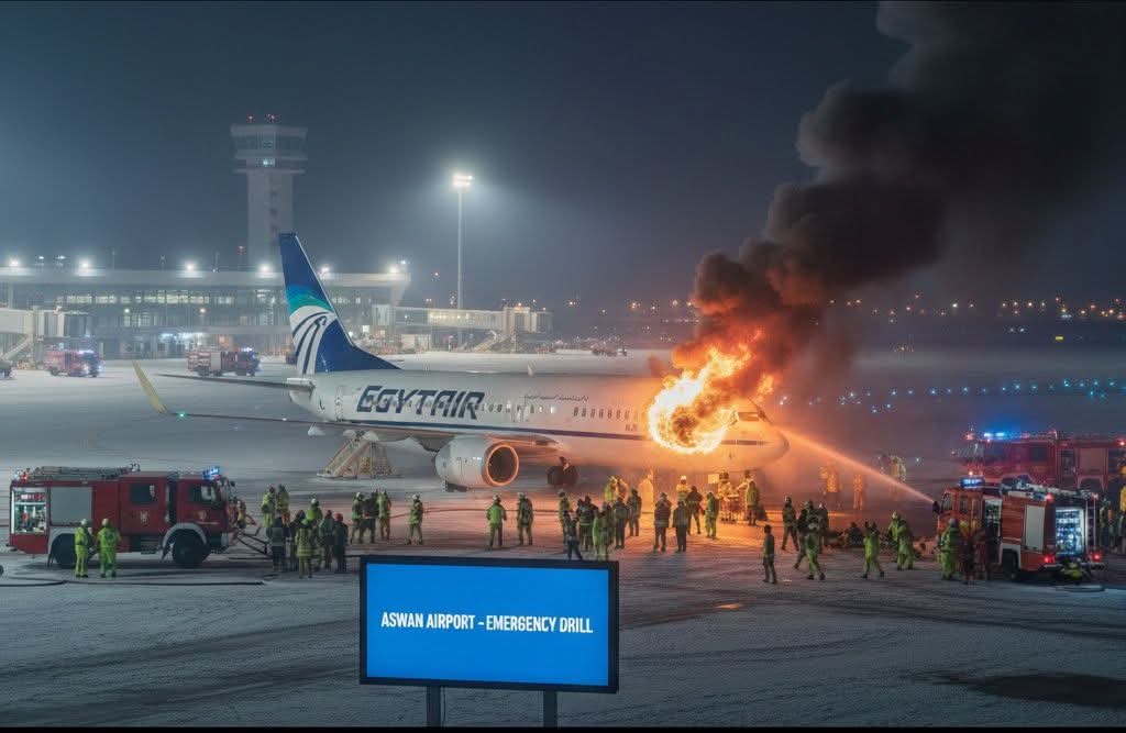 نفذت سلطات مطار أسوان الدولي تجربة طوارئ حية واسعة النطاق، في إطار خططها المستمرة لرفع كفاءة الاستجابة السريعة وضمان أعلى معايير السلامة الجوية، وذلك من خلال محاكاة حادث طيران ناتج عن اصطدام طائرة بسرب من الطيور، ما أدى إلى تعطل أحد محركاتها وانحرافها عن المدرج.