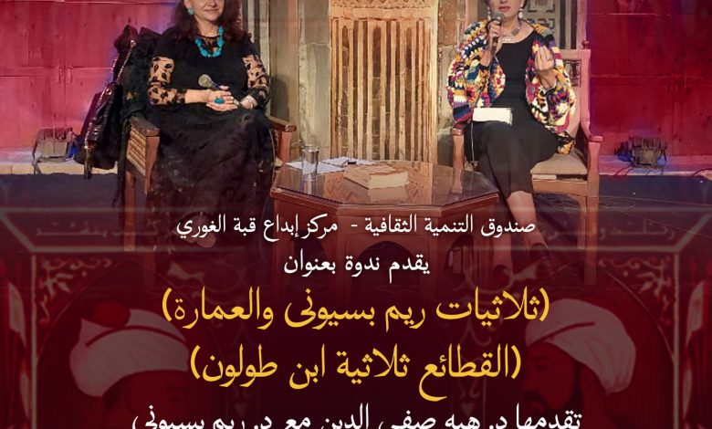 يقدّم مركز إبداع قبة الغوري بشارع الأزهر، التابع لقطاع صندوق التنمية الثقافية، ندوة جديدة ضمن سلسلة ندوات «ثلاثيات ريم بسيوني والعمارة»، للكاتبة د. ريم بسيوني، بعنوان «القطائع.. ثلاثية ابن طولون»، وذلك يوم الثلاثاء الموافق 10 فبراير، في تمام الساعة السابعة والنصف مساءً، حيث تقدّم الندوة وتدير الحوار د. هبة صفي الدين.