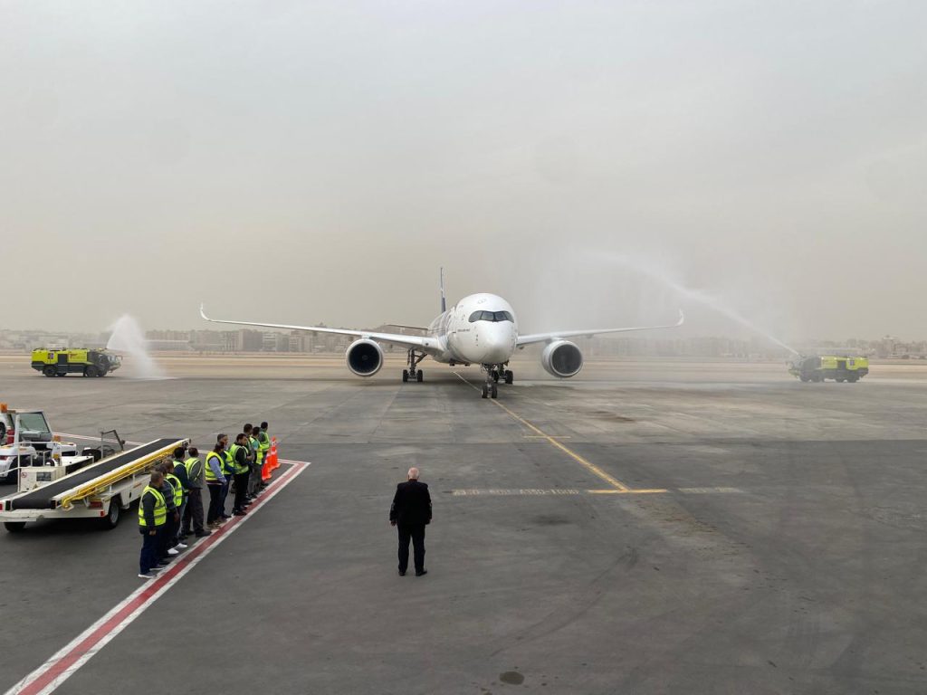 وأشارت المصرية للمطارات إلى أن طائرات A350-900 تُعد من أحدث الطرازات عالميًا في مجالات الاستدامة البيئية وترشيد استهلاك الوقود وتحسين تجربة السفر، بما يواكب أحدث المعايير الدولية لجودة الخدمة والسلامة الجوية.