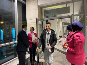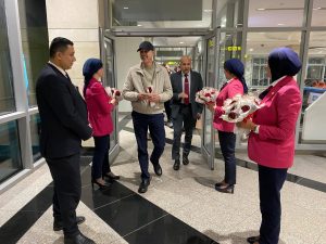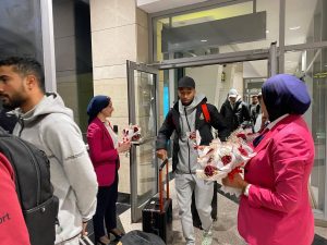 وكان في استقبال البعثة فريق متخصص من العلاقات العامة والإعلام بمطار القاهرة الدولي حيث تم الترحيب بأعضاء الجهازين الفني والإداري واللاعبين وتقديم الورود لهم في مشهد يعكس حفاوة الاستقبال والروح الرياضية ويجسد عمق العلاقات الأخوية بين الفريقين .