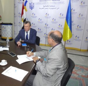 *الأوكرانيون يدرسون إنشاء مركز لوجستي وغذائي ضخم بمصر كبوابة لتصدير المنتجات الزراعية الأوكرانية لأفريقيا والشرق الأوسط.. وترحيب أوكراني بالشركات المصرية للمساهمة في إعادة الإعمار بعد توقف الحرب الروسية ضد الأوكرانيين. **الجمهورية الأوكرانية تريد سلاماً لا يمس بالسيادة الوطنية أو تنازل عن أراضيها. وعضوية " الناتو " خياراً أمنياً للأوكرانيين.. والجيش القوي ضمانة حقيقية لسلامة أوكرانيا