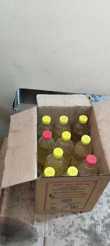 وخلال أعمال التفتيش، تم التحفظ على 500 لتر زيت طعام سائب، و540 زجاجة زيت معبأة معدة للتداول بالأسواق قبل طرحها للبيع، فضلاً عن ضبط عدد كبير من الزجاجات الفارغة الجاهزة للتعبئة، وكميات من الملصقات “الاستيكرات” التي تحمل علامات تجارية مقلدة، بالإضافة إلى ماكينة طباعة وتدوين تواريخ الصلاحية تُستخدم في إعادة تعبئة الزيوت ووضع بيانات وهمية تمهيدًا لطرحها بالأسواق، في واقعة تمثل غشًا تجاريًا وتدليسًا واضحًا على جمهور المستهلكين.