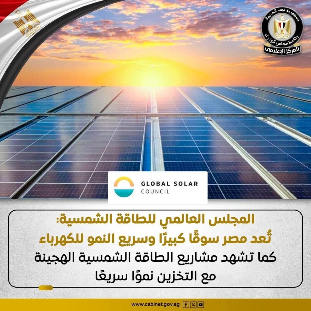 أشاد المجلس العالمي للطاقة الشمسية (GSC) في تقريره الصادر في فبراير 2026 بجهود الدولة المصرية لتنويع مصادر الإمداد ودعم صادرات الكهرباء، وفي هذا السياق، أعلنت شركة Scatec ASA النرويجية بدء التشغيل التجاري لمشروع محطة «أوبيليسك» للطاقة الشمسية في نجع حمادي، والذي يعد أول محطة هجينية للطاقة المتجددة في مصر، إذ يجمع المشروع بين توليد الكهرباء وتخزينها بقدرة 561 ميجاوات شمسية و200 ميجاوات/ساعة في المرحلة الأولى، و564 ميجاوات في المرحلة الثانية، مما يعزز استقرار الشبكة الكهربائية ومرونتها، وينوع مصادر الطاقة، ويبرهن على التزام مصر بمستقبل طاقة مستدام.