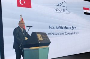 وقال السفير صالح موطلو شن: إن التطورات، والإنجازات التي شهدتها مصر خلال السنوات الأخيرة، لاسيما في مجال الارتقاء بمنظومة شبكة الطرق والبنية التحتية، تمثل قاعدة قوية لجذب مزيد من الاستثمارات؛ مشيراً إلى المقومات الاستراتيجية المصرية المتكاملة، بداية من القوة البشرية، للموقع الجغرافي المتميز، والقدرات المؤسسية، والرؤية الصناعية الطموحة.