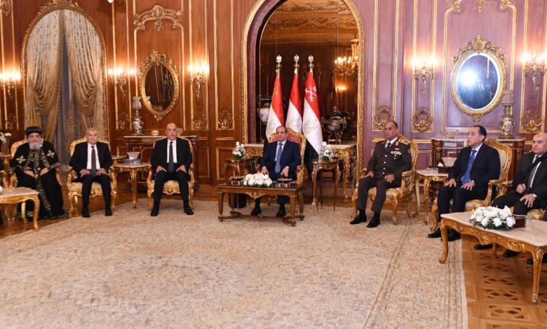 كل سنة وانتم طيبيين … وسعيد بلقائكم… اطمئنوا على مصر كويس، محدش بفضل الله… بفضل الله… بفضل الله يقدر يقترب من هذا البلد.